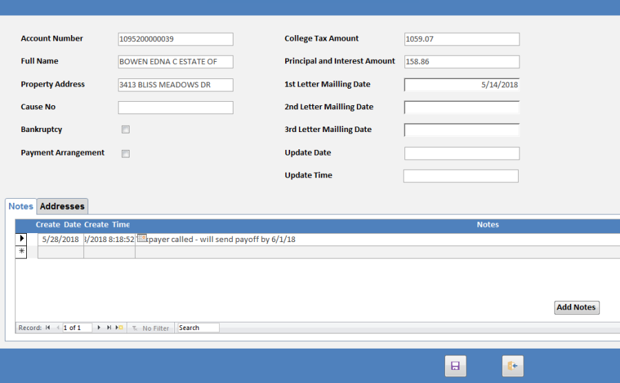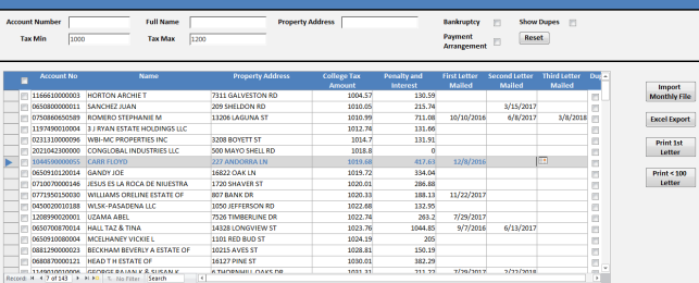 We have great success with setup of Microsoft Access databasess to support tax collection offices. On these projects, we transform use of spreadsheets and other less efficient tools into a single database with intuitive user interfaces.